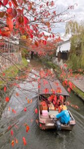 八幡堀で和舟を眺めながら紅葉を楽しみました🍁