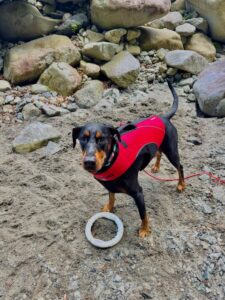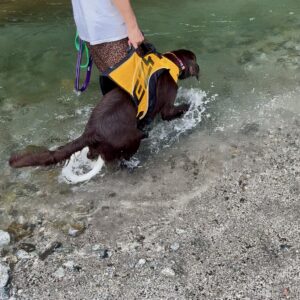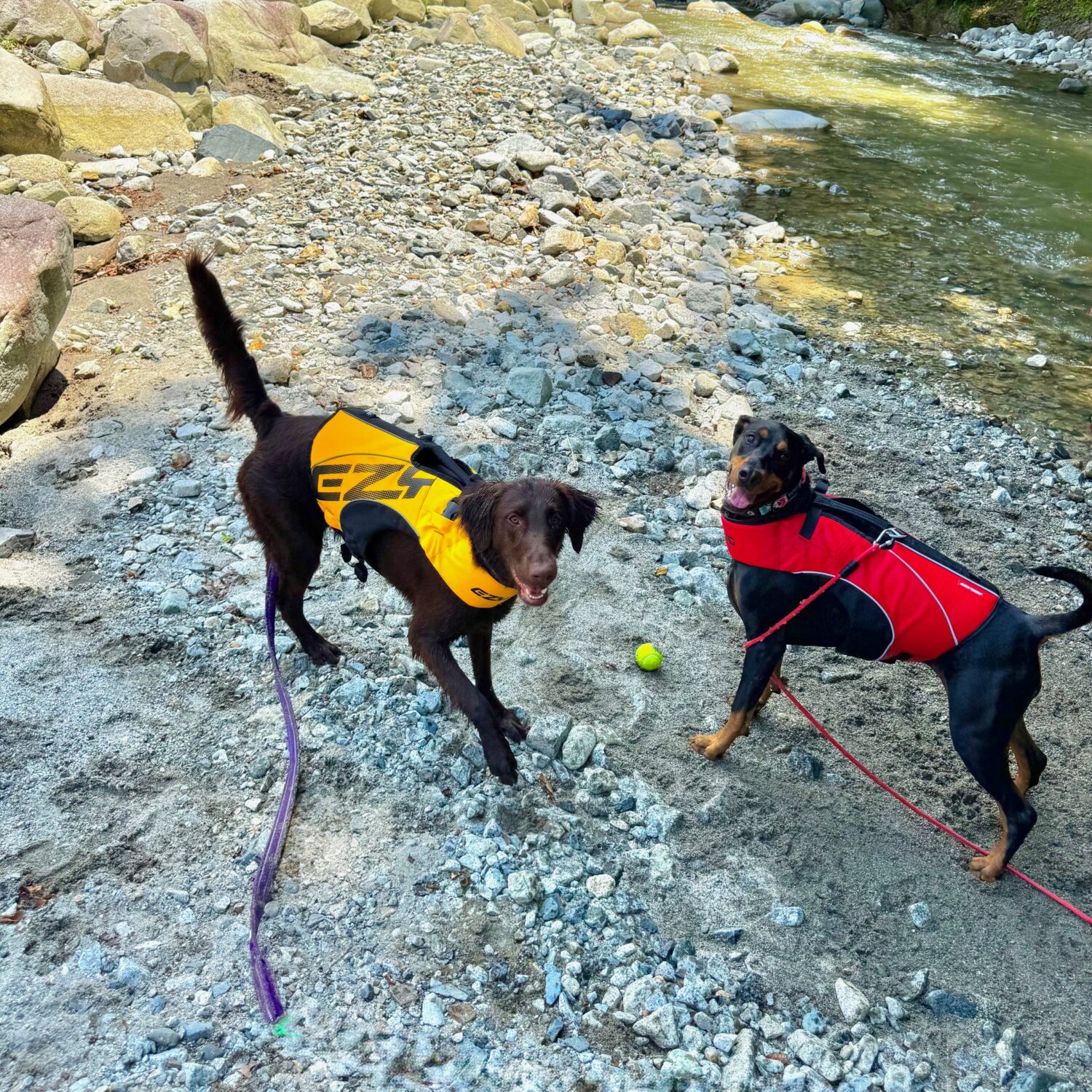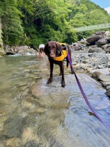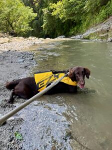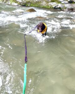 流れに逆らって泳ぎ、おもちゃを取ってきてくれます🐕💨
