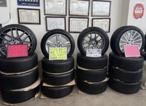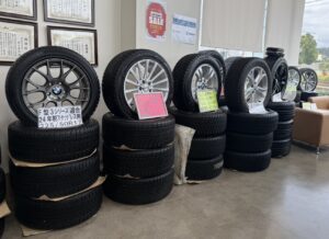 TRUSTY本店のショールーム内には車両の他にタイヤ・ホイールも展示してあります🛞