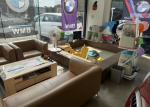ショールーム入口横の商談席の隣に広々としたキッズスペースもございます!🎏👩👧👦